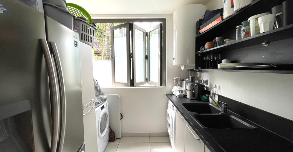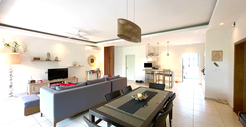 Ground floor apartment, located in a luxurious residence in the heart of Pereybère, with: - A large living room open on a large covered terrace - A kitchen and back kitchen equipped - A covered terrace with Jacuzzi - A master bedroom with dressing room and bathroom - Two bedrooms in suite - A private garden The residence has a sumptuous communal swimming pool surrounded by a large tropical garden, an outdoor sports area, a restaurant built in a former lava stone stable. Contact us for more information.